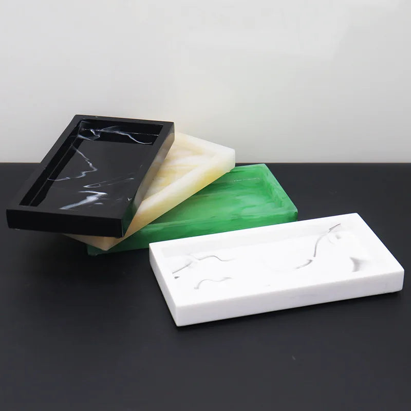 Elegantes rechteckiges Aufbewahrungstablett aus Marmor-Harz für vielseitige Verwendung im Haushalt. Perfekt als Schmuck-Organizer im Badezimmer, zur Aufbewahrung von Tellern in der Küche oder als dekoratives Tablett auf dem Schminktisch. Das edle Marmor-Design verleiht jedem Raum einen Hauch von Luxus. Robust, langlebig und leicht zu reinigen. Ideal für die stilvolle Organisation Ihrer Accessoires und Utensilien.