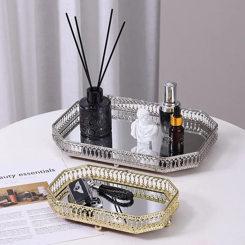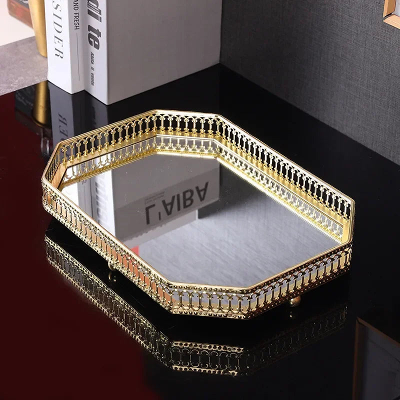 Elegantes Spiegel-Metall-Tablett im Luxus-Design