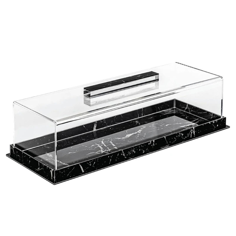 Elegantes rechteckiges Dessert Serviertablett aus Acryl mit transparentem Deckel. Perfekt als Kuchenbox, Cake Display Box oder Tortenplatte für professionelle und private Nutzung. Der klare Deckel schützt Ihre Kuchen und Desserts und ermöglicht gleichzeitig eine ansprechende Präsentation. Ideal für Bäckereien, Cafés, Partys oder den Heimgebrauch. Robust, leicht zu reinigen und vielseitig einsetzbar.