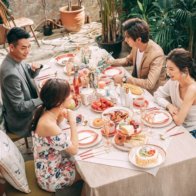 Dieser hochwertige Steakteller aus feinem Bone China Porzellan verleiht jedem Tisch eine luxuriöse Note. Perfekt für Western Cuisine, Kaffee, Gebäck und als stilvolle Tischdekoration!